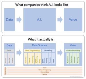 The truth is that few of us want a 10th man on the team in a serious way. We especially do not want to encounter one towards the end of project. Nevertheless, the 1oth man role is exactly what organisations forging ahead into areas like AI need. Glyn Luckett recently posted the following diagram on LinkedIn describing what it really takes to implement AI…
