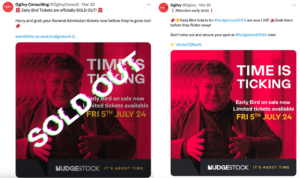 You can see that the promotion of an early bird discount has been genuine. Now that it’s sold out, there is the danger that the regular-priced tickets might sell out too. So time is ticking. A good tactic to apply here is to keep updating customers when 70% of tickets are sold-out, then 80%, and so on. The above is a mix of a time-related scarcity and the next scarcity variation – supply-related scarcity because the number of seats in a physical conference venue is finite.